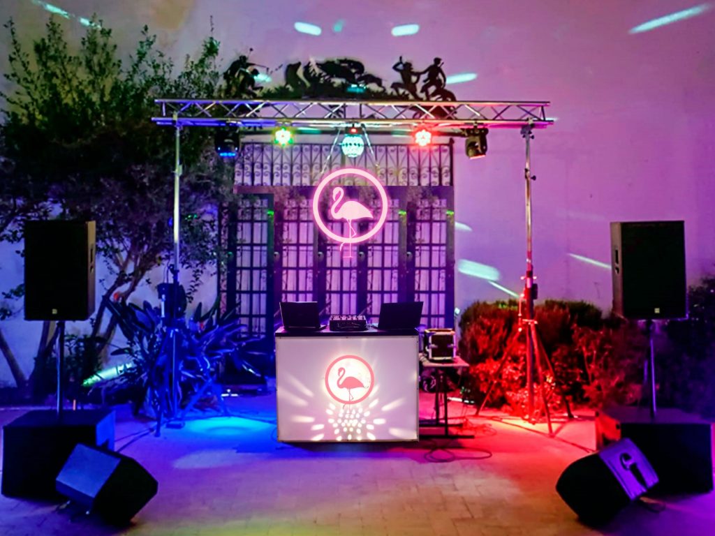 Montaje de sonido para Dj y actuación del grupo contratado a través de Bomberay eventos compuesto por: